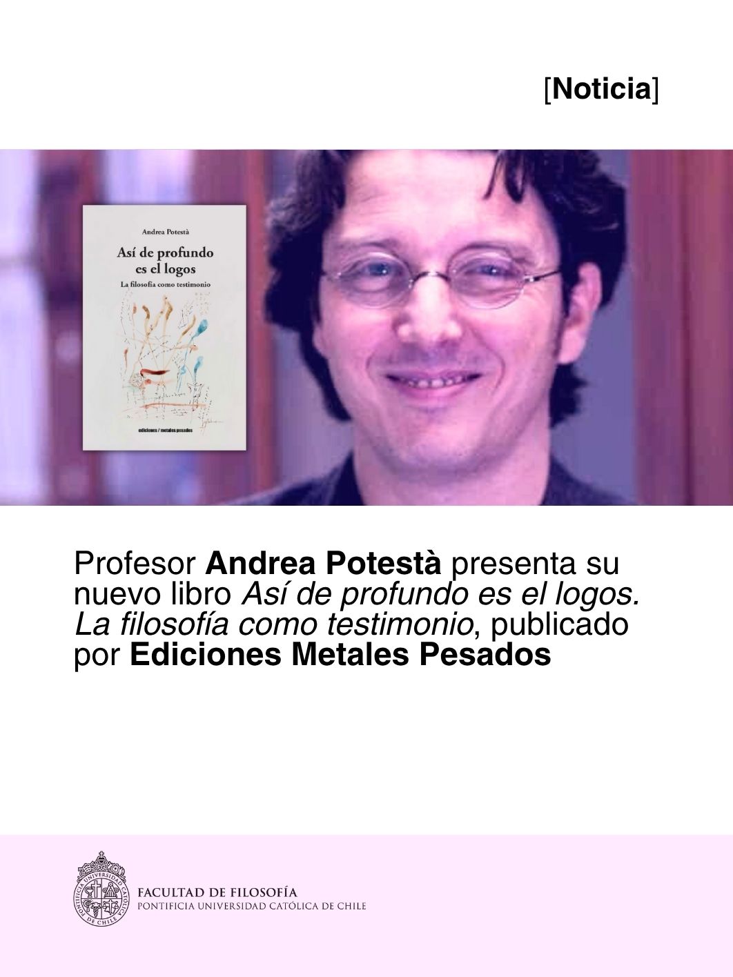 #Noticia El profesor Andrea Potestà presenta su nuevo libro “Así de profundo es el logos. La filosofía como testimonio”, publicado por Metales Pesados Libros