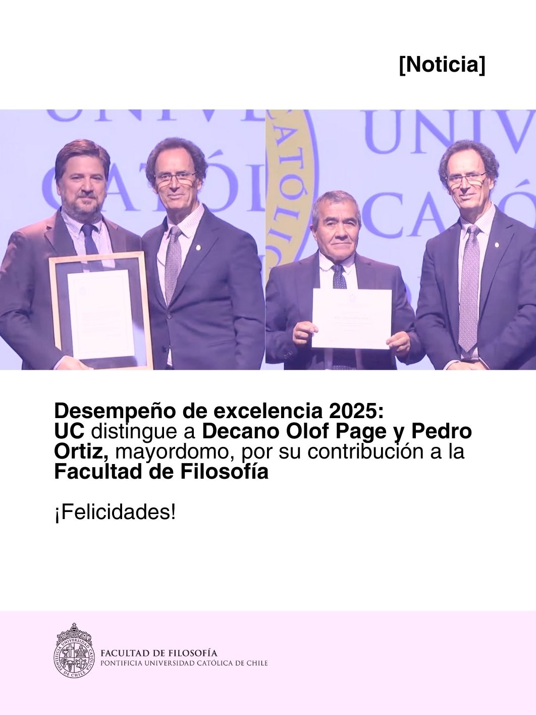 Desempeño de excelencia 2025: UC distingue a Decano Olof Page y Pedro Ortiz por su contribución en el Ciclo de Desempeño 2024