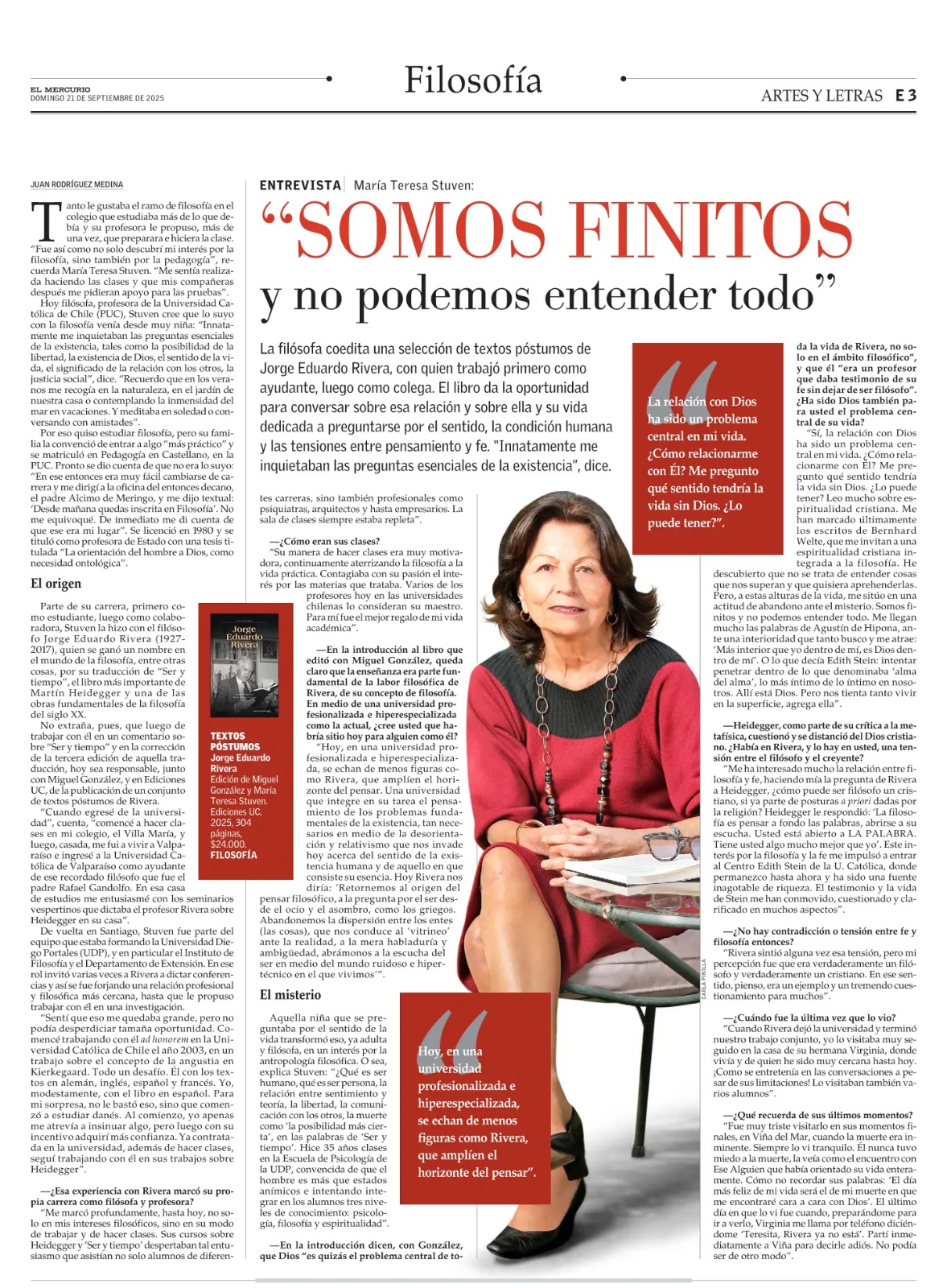 Profesora María Teresa Stuven es entrevistada por El Mercurio sobre su último libro “Jorge Eduardo Rivera: Escritos póstumos”