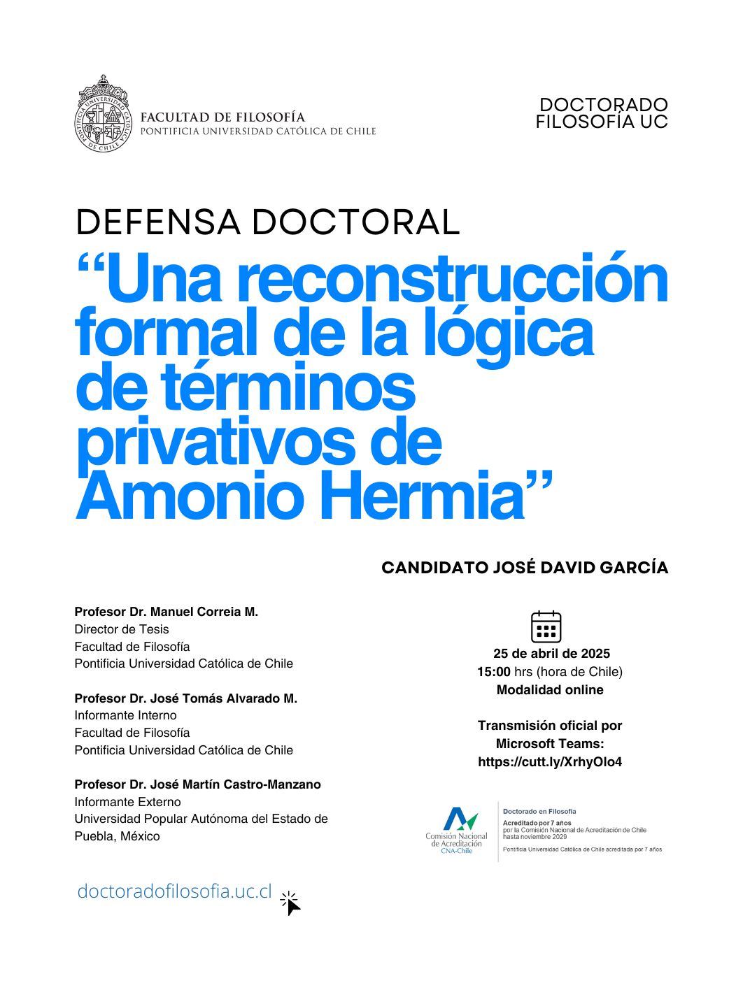 Defensa doctoral José David García | «Una reconstrucción formal de la lógica de términos privativos de Amonio Hermia”