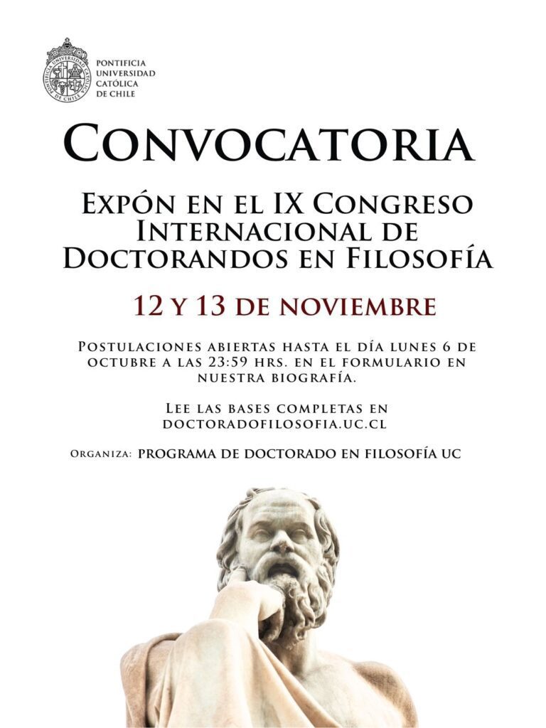 El Doctorado en Filosofía UC te invita a exponer en el IX Congreso Internacional de Doctorandos en Filosofía, los días 12 y 13 de noviembre.