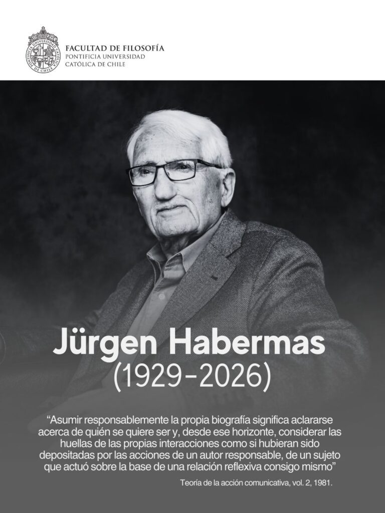“La muerte de Jürgen Habermas aconteció el pasado sábado 14 de marzo de 2026 a los 96 años. Lo primero que me llamó la atención es que dicho fallecimiento fue recogido por la prensa internacional (ARD en Alemania, El País en España, El Mercurio en Chile, etc.) Tratándose de un filósofo no deja de llamar la atención. La pregunta es ¿por qué? Hay varias razones, la primera es que ha muerto uno de los últimos representantes de la filosofía del siglo XX en Alemania. Habermas fue el principal representante de la denominada segunda escuela de Frankfurt, que tuvo entre sus fundadores a Adorno y Horkheimer. La segunda es que sus libros y teorías son mundialmente conocidas, desde la Teoría de la acción comunicativa,Conocimiento e interés,El discurso filosófico de la modernidad, sus numerosos textos sobre ética, ciencias sociales, etc. Pero no menos importante, es el rol público que Habermas tuvo, como filósofo e intelectual, tanto en Alemania como en el mundo. Con aciertos y errores, Habermas no tuvo dificultades en pronunciarse sobre la culpa de los alemanes después de la Segunda Guerra Mundial, las protestas estudiantiles del 68, los derechos humanos, la globalización, etc. Ha muerto, entonces, un intelectual ejemplar de tono mayor”.