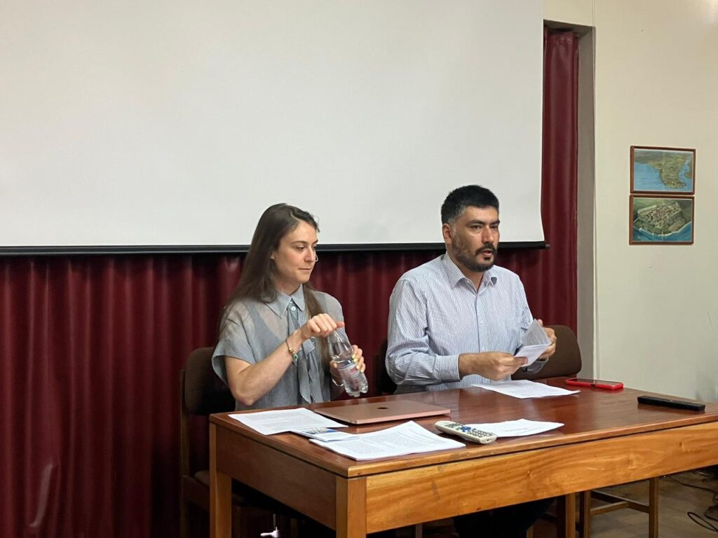 Sofía Lombardi junto a Sebastián Salinas, subdirector del Centro de Estudios Griegos.